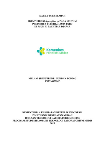Lumban Tobing, Melani Sri Putri (2025) IDENTIFIKASI Aspergillus sp PADA SPUTUM PENDERITA TUBERKULOSIS PARU DI RSUD H. BACHTIAR DJAFAR. Diploma thesis, Poltekkes Medan.