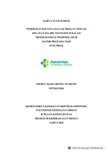 Waruwu, Sherly Margaretha (2025) PENERAPAN ROLLING MASSAGE DENGAN MINYAK KELAPA PADA IBU POSTPARTUM DALAM MENINGKATKAN PRODUKSI ASI DI KLINIK PRATAMA NIAR PATUMBAK. Diploma thesis, Poltekkes Kemenkes Medan.