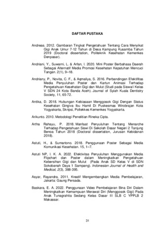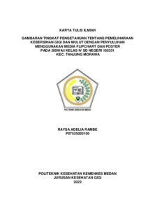 Rambe, Raysa Adelia (2023) Gambaran Tingkat Pengetahuan Tentang Pemeliharaan Kebersihan Gigi dan Mulut dengan Penyuluhan Menggunakan Media Flipchart dan Poster Pada Siswa/i Kelas IV SD Negeri 105331 Kec. Tanjung Morawa. Diploma thesis, Poltekkes Kemenkes Medan.