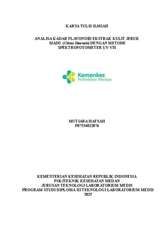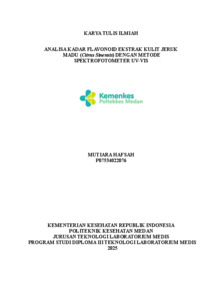 Mutiara, Hafsah (2025) ANALISA KADAR FLAVONOID EKSTRAK KULIT JERUK MADU (Citrus Sinensis) DENGAN METODE SPEKTROFOTOMETER UV-VIS. Diploma thesis, Poltekkes Medan.