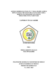 Siagian, Tresia Kristin (2023) ASUHAN KEBIDANAN PADA NY. V MASA HAMIL SAMPAI DENGAN MASA NIFAS DAN PELAYANAN KELUARGA BERENCANA DI KLINIK NANA DIANA MEDAN HELVETIA TAHUN 2023. Diploma thesis, Poltekkes Kemenkes Medan.