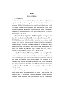 Data World Health Organization (WHO) menyatakan secara global pada tahun 2018 , Angka Kematian Ibu (AKI) di seluruh dunia di perkirakan 8,30 per 100.000 kelahiran hidup akibat komplikasi kehamilan dan persalinan. Angka Kematian Bayi (AKB) di dunia mencapai 7.000 per 1000 kelahiran hidup akibat premature, asfiksia, pneumonia, komplikasi kelahiran dan infeksi neonatal (World Health Organization, 2018). Menurut Data World Health Organization (2019) Angka Kematian Ibu (AKI) didunia yaitu sebanyak 303.000 jiwa. Angka Kematian Ibu (AKI) di ASEAN yaitu sebesar 235 per 100.000 kelahiran hidup(UNICEF, 2020)