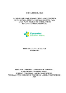 Miftah, Zakiyyah Arafah (2025) GAMBARAN KADAR HEMOGLOBIN PADA PENDERITA KUTU KEPALA (PEDICULUS HUMANUS CAPITIS) PADA ANAK PANTI ASUHAN AL-MARHAMAH DI KECAMATAN MEDAN SUNGGAL. Diploma thesis, Poltekkes Medan.