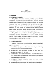 Penyuluhan merupakan kegiatan pendidikan yang dilakukan dengan cara menyebarluaskan pesan, menanamkan keyakinan sehingga sasaran tidak hanya sadar, tahu dan mengerti tetapi juga mau dan bisa melakukan suatu yang telah dianjuran yang ada hubungannya dengan kesehatan gigi dan mulut.