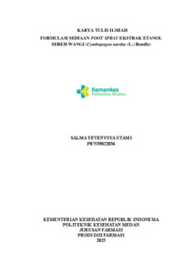 SALMA YEVENYSYA UTAMI, SALMA YEVENYSYA UTAMI (2025) FORMULASI SEDIAAN FOOT SPRAY EKSTRAK ETANOL SEREH WANGI (Cymbopogon nardus (L.) Rendle). Diploma thesis, Poltekkes Kemenkes Medan.