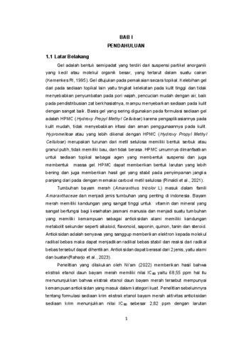 Kata kunci : Formulasi, Gel, Ekstrak, Daun Bayam Merah