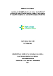 NURFADIAH MULYADI, NURFADIAH MULYADI (2024) HUBUNGAN PENGETAHUAN DAN SIKAP MASYARAKAT TERHADAP PENGGUNAAN ANTIBIOTIK DI LINGKUNGAN IV KELURAHAN BANTAN KECAMATAN MEDAN TEMBUNG. Diploma thesis, Poltekkes Kemenkes Medan.