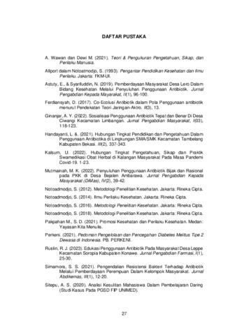 Kata kunci : Antibiotika, Pengetahuan, Sikap, Tindakan