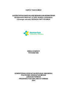 DINDA KHAIRATI, DINDA KHAIRATI (2024) UJI EFEKTIVITAS DAN EVALUASI SEDIAAN LILIN AROMATERAPI BERBAHAN MINYAK ATSIRI BUNGA KENANGA (Cananga odorata) SEBAGAI ANTI NYAMUK. Diploma thesis, Poltekkes Kemenkes Medan.