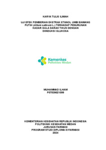 MUHAMMAD ILHAM, MUHAMMAD ILHAM (2024) UJI EFEK PEMBERIAN EKSTRAK ETANOL UMBI BAWANG PUTIH (Allium sativum L.) TERHADAP PENURUNAN KADAR GULA DARAH TIKUS DENGAN DIINDUKSI GLUKOSA. Diploma thesis, Poltekkes Kemenkes Medan.
