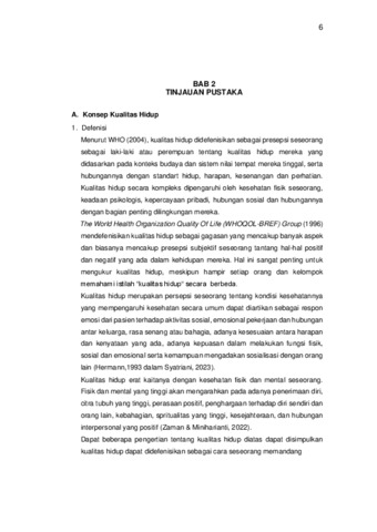 Kesimpulan: Berdasarkan hasil penelitian maka dapat disimpulkan kualitas hidup