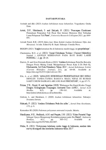 Kata kunci : Asuhan Kebidanan, Kehamilan, Persalinan, Nifas, BBL, KB Continuty Of Care (COC)
