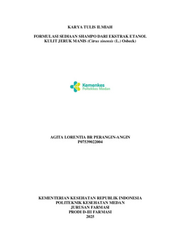 BR PERANGIN-ANGIN, AGITA LORENTIA BR PERANGIN-ANGIN (2025) FORMULASI SEDIAAN SHAMPO DARI EKSTRAK ETANOL KULIT JERUK MANIS (Citrus sinensis (L.) Osbeck). Diploma thesis, Poltekkes Kemenkes Medan.