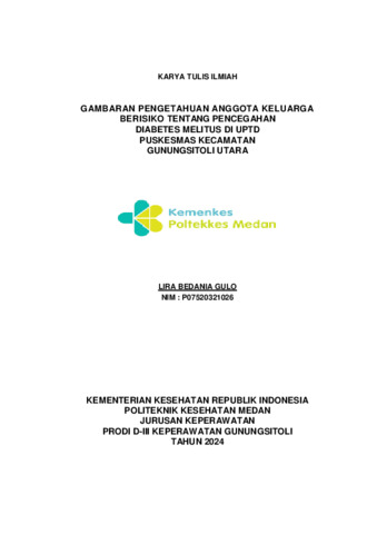 Lira Bedania, Gulo (2024) Gambaran Pengetahuan Anggota Keluarga Beresiko Tentang Pencegahan Diabetes Melitus Di UPTD Puskesmas Kecamatan Gunungsitoli Utara. Diploma thesis, Poltekkes Kemenkes Medan.