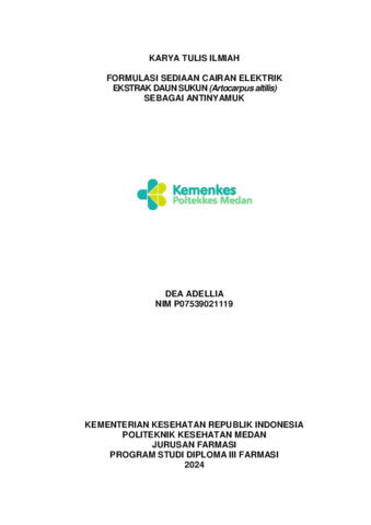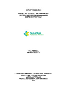 DEA ADELLIA, DEA ADELLIA (2024) FORMULASI SEDIAAN CAIRAN ELEKTRIK EKSTRAK DAUN SUKUN (Artocarpus altilis) SEBAGAI ANTINYAMUK. Diploma thesis, Poltekkes Kemenkes Medan.