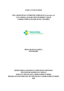 Reisa, Diah Salsabila (2025) POLA RESISTENSI ANTIBIOTIK TERHADAP Escherichia coli YANG DIISOLASI DARI URIN PENDERITA ISK DI LABORATORIUM KLINIK BUNDA THAMRIN. Diploma thesis, Poltekkes Medan.