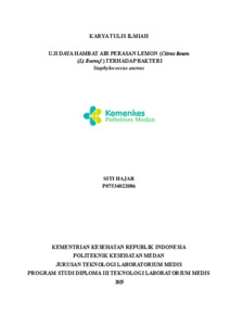 Siti, Hajar (2025) UJI DAYA HAMBAT AIR PERASAN LEMON (Citrus limon (L) Burm.f.) TERHADAP BAKTERI Staphylococcus aureus. Diploma thesis, Poltekkes Medan.