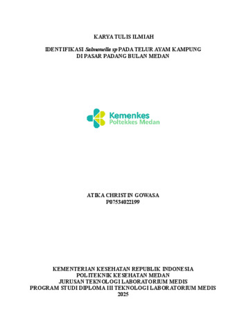 Gowasa, Atika Christin (2025) IDENTIFIKASI Salmonella sp PADA TELUR AYAM KAMPUNG DI PASAR PADANG BULAN MEDAN. Diploma thesis, Poltekkes Medan.