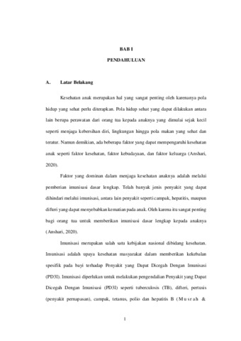 Kata Kunci : Pendidikan, Pekerjaan, Pengetahuan, Dukungan Keluarga, Imunisasi Dasar