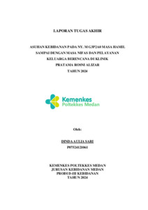 Sari, Dinda Aulia (2024) ASUHAN KEBIDANAN PADA NY. M G3P2A0 MASA HAMIL SAMPAI DENGAN MASA NIFAS DAN PELAYANAN KELUARGA BERENCANA DI KLINIK PRATAMA ROSNI ALIZAR TAHUN 2024. Diploma thesis, Poltekkes Kemenkes Medan.