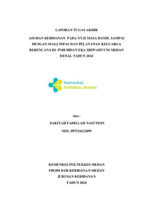 Nasution, Zakiyah Fadillah (2024) ASUHAN KEBIDANAN PADA NY.D MASA HAMIL SAMPAI DENGAN MASA NIFAS DAN PELAYANAN KELUARGA BERENCANA DI PMB BIDAN EKA SRIWAHYUNI MEDAN DENAI. TAHUN 2024. Diploma thesis, Poltekkes Kemenkes Medan.