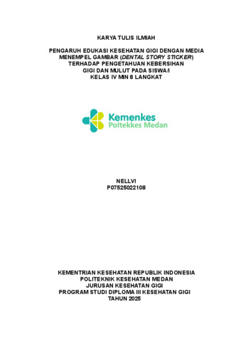 Nellvi, Nellvi (2025) PENGARUH EDUKASI KESEHATAN GIGI DENGAN MEDIA MENEMPEL GAMBAR (DENTAL STORY STICKER) TERHADAP PENGETAHUAN KEBERSIHAN GIGI DAN MULUT PADA SISWA/I KELAS IV MIN 8 LANGKAT. Diploma thesis, POLTEKKES KEMENKES MEDAN.