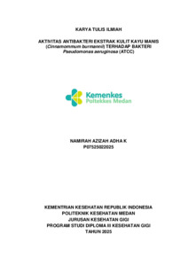 ADHA K., NAMIRAH AZIZAH (2025) AKTIVITAS ANTIBAKTERI EKSTRAK KULIT KAYU MANIS (Cinnamommum burmannii) TERHADAP BAKTERI Pseudomonas aeruginosa (ATCC). Diploma thesis, Poltekkes Kemenkes Medan.