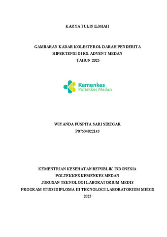 Siregar, Wiyanda Puspita Sari (2025) GAMBARAN KADAR KOLESTEROL DARAH PENDERITA HIPERTENSI DI RS. ADVENT MEDAN TAHUN 2025. Diploma thesis, Poltekkes Medan.