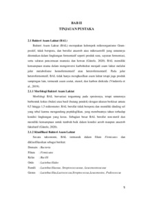 Laktat (BAL) dari fermentasi feses luwak asal Sidikalang. Penelitian ini dilakukan