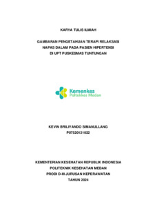 Simanullang, Kevin Briliyando (2024) Gambaran Pengetahuan Terapi Relaksasi Nafas Dalam Pada Pasien Hipertensi Di UPT Puskesmas Tuntungan. Diploma thesis, Poltekkes Kemnkes Medan.
