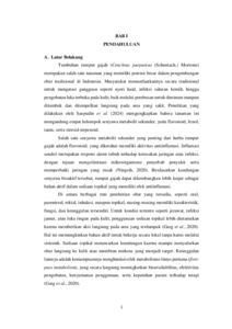 Penelitian ini bertujuan untuk membuat sediaan emulgel dengan menggunakan ekstrak etanol herba rumput gajah (Cenchrus purpureus (Schumach.) Morrone) sebagai zat aktif yang memiliki potensi antiinflamasi, berdasarkan kandungan senyawa metabolit sekundernya yaitu flavonoid, fenol, tanin, dan steroid-terpenoid. Penelitian dilakukan secara eksperimental di laboratorium dengan metode ekstraksi maserasi menggunakan pelarut etanol 96%. Ekstrak yang dihasilkan diformulasikan menjadi tiga sediaan emulgel dengan konsentrasi 1%, 3%, dan 5%. Uji stabilitas fisik dilakukan terhadap masing-masing formula selama 21 hari,