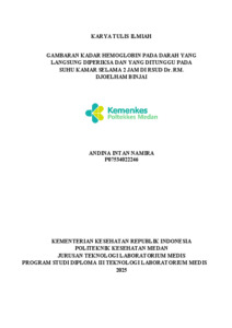 Andina, Namira (2025) GAMBARAN KADAR HEMOGLOBIN PADA DARAH YANG LANGSUNG DIPERIKSA DAN YANG DITUNGGU PADA SUHU KAMAR SELAMA 2 JAM DI RSUD Dr. RM. DJOELHAM BINJAI. Diploma thesis, Poltekkes Medan.