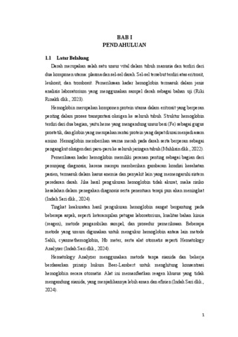 Pemeriksaan kadar hemoglobin merupakan prosedur penting dalam analisis