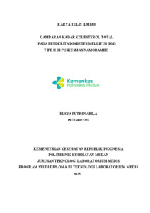 Elsya Putri, Nabila (2025) GAMBARAN KADAR KOLESTEROL TOTAL PADA PENDERITA DIABETES MELLITUS (DM) TIPE II DI PUSKESMAS NAMORAMBE. Diploma thesis, Poltekkes Medan.