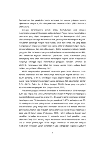 Kesimpulan: Disimpulkan kecemasan pada lansia menunjukkan bahwa