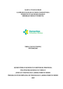 Mangunsong, Thesa (2025) GAMBARAN KADAR GLUKOSA DARAH PADA PEMINUM TUAK DI KELURAHAN SIDOREJO MEDAN TEMBUNG. Diploma thesis, Poltekkes Medan.