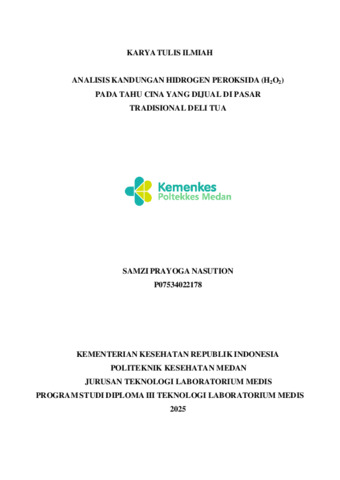 keberadaan dan kadar H2O2 pada tahu cina yang dijual di Pasar Tradisional Deli