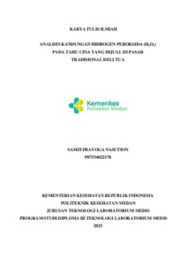 Nasution, Samzi Prayoga (2025) ANALISIS KANDUNGAN HIDROGEN PEROKSIDA (H2O2) PADA TAHU CINA YANG DIJUAL DI PASAR TRADISIONAL DELI TUA. Diploma thesis, Poltekkes Medan.