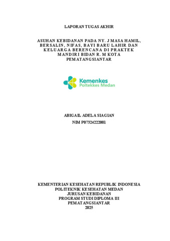 Siagian, Abigael Adela (2025) Asuhan Kebidanan Pada Ny. J Masa Hamil, Bersalin, Nifas, Bayi Baru Lahir dan Keluarga Berencana di Praktek Mandiri Bidan R. M Kota Pematangsiantar.