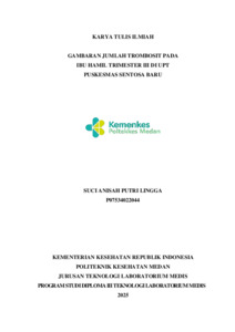 Lingga, Suci Anisah Putri (2025) GAMBARAN JUMLAH TROMBOSIT PADA IBU HAMIL TRIMESTER III DI UPT PUSKESMAS SENTOSA BARU. Diploma thesis, Poltekkes Medan.