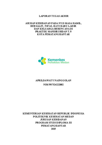 Nainggolan, Aprildawaty (2025) Asuhan Kebidanan Pada Ny. D Masa Hamil, Bersalin, Nifas, Bayi Baru Lahir dan Keluarga Berencana Di Praktik Mandiri Bidan T.N Kota Pematang Siantar.