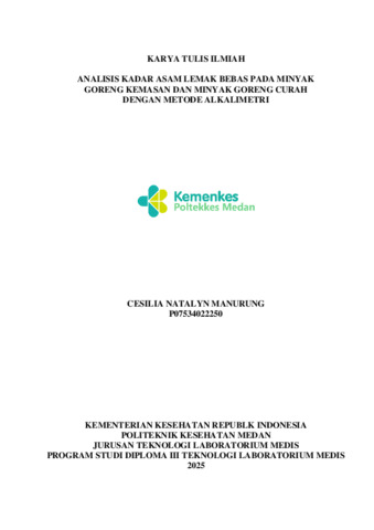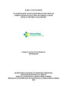 Manurung, Cesilia Natalyn (2025) ANALISIS KADAR ASAM LEMAK BEBAS PADA MINYAK GORENG KEMASAN DAN MINYAK GORENG CURAH DENGAN METODE ALKALIMETRI. Diploma thesis, Poltekkes Medan.
