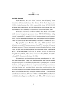 Angka Kematian Ibu (AKI) adalah salah satu indikator penting dalam menentukan keberhasilan kesehatan ibu. Menurut World Health Organization (WHO), Angka Kematian Ibu (AKI) secara global sebesar 287.000/100.000 kelahiran hidup, yang dimana penyebab kematian ibu tersebut terjadi pada saat melahirkan dan pasca melahirkan.