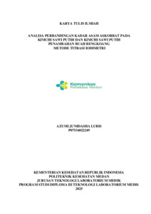 Lubis, Azumi Junidasha (2025) ANALISA PERBANDINGAN KADAR ASAM ASKORBAT PADA KIMCHI SAWI PUTIH DAN KIMCHI SAWI PUTIH PENAMBAHAN BUAH BENGKOANG METODE TITRASI IODIMETRI. Diploma thesis, Poltekkes Medan.