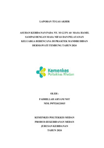 Nst, Fadhillah Aryani (2024) Asuhan Kebidanan Pada Ny. M G2 P1 A0 Masa Hamil Sampai Dengan Masa Nifas Dan Pelayanan Keluarga Berencana Di Praktek Mandiri Bidan Dermawati Tembung Tahun 2024. Diploma thesis, Poltekkes Kemenkes Medan.