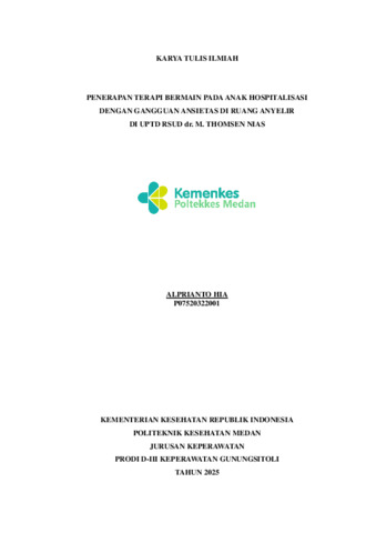 Alprianto, Hia (2025) Penerapan Terapi Bermain Pada Anak Hospitalisasi Dengan Gangguan Ansietas Di Ruang Anyelir DI UPTD RSUD dr. M. Thomsen Nias. Diploma thesis, Poltekkes Kemenkes Medan.