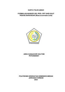 BR GULTOM, ADEA KANAAN BR GULTOM (2023) FORMULASI MASKER GEL PEEL-OFF DARI KULIT PISANG BARANGAN (Musa acuminata Colla). Diploma thesis, Poltekkes Kemenkes Medan.
