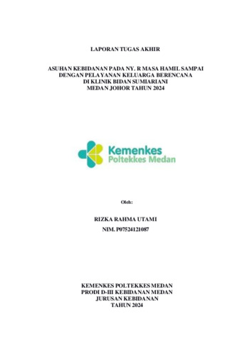 1.00 kelahiran hidup. Tujuan dari penulisan LTA ini adalah memberikan asuhan kebidanan secara continuity of care kepada Ny. R dari hamil trimester III, bersalin, nifas, bayi baru