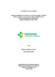 Utami, Rizka Rahma (2024) Asuhan Kebidanan Pada Ny. R Masa Hamil Sampai Dengan Pelayanan Keluarga Berencana Di Klinik Bidan Sumiariani Medan Johor Tahun 2024. Diploma thesis, Poltekkes Kemenkes Medan.