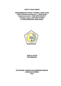 ADELIA PUTRI, ADELIA PUTRI (2023) PERBANDINGAN KADAR VITAMIN C PADA SAWI PUTIH (Brassica pekinensis L.) SAWI HIJAU (Brassica juncea L.) DAN SAWI PAKCOY (Brassica rapa L,) SECARA TITRASI 2,6 DIKLOROFENOL INDOFENOL. Diploma thesis, Poltekkes Kemenkes Medan.